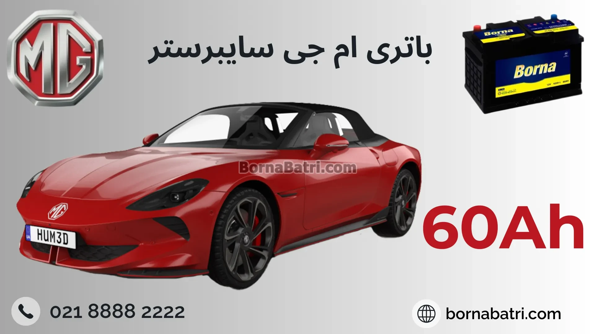 برای ام جی سایبرستر باتری 60 آمپر برنا باتری مناسب است.