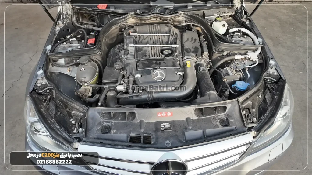 توجه داشته باشید که بر روی بنز C200 باطری تا 80 آمپر میشود نصب کرد ولی بیشتر از باطری 80 آمپر به هیچ وجه برای بنز سی 200 توصیه نمیشود.