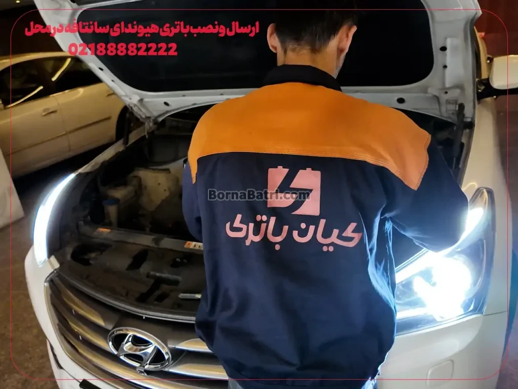 فروش اینترنتی برنا باتری - ارسال و نصب شبانه روزی باتری در محل- باتری هیوندای سانتافه