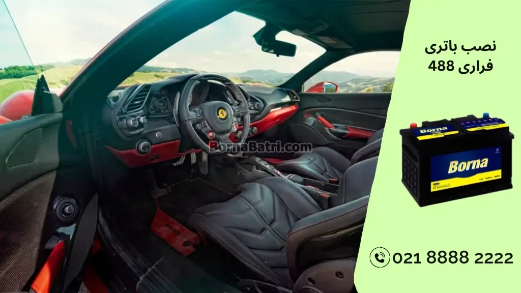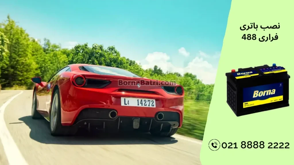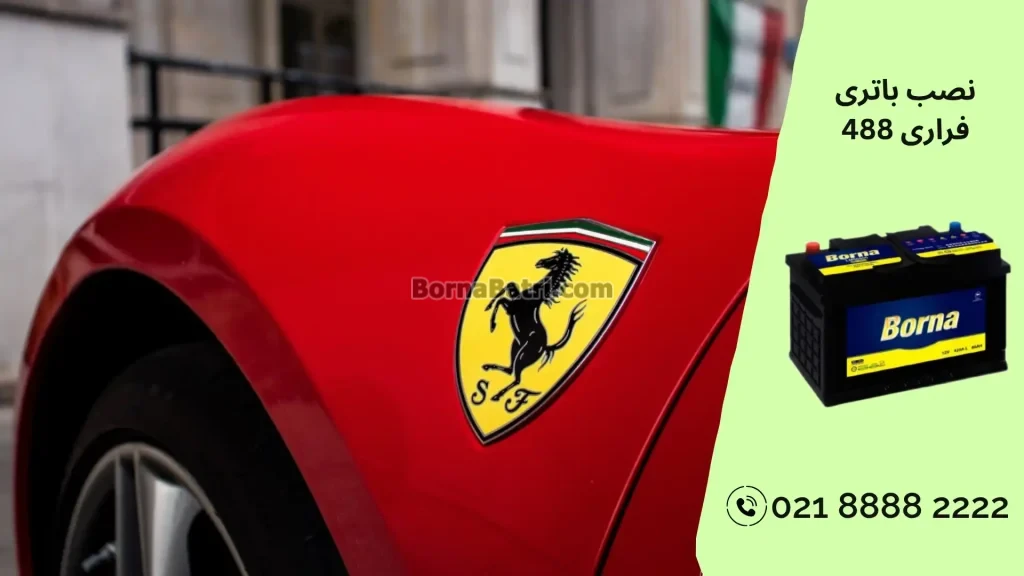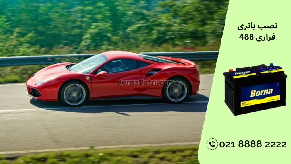 بهترین باطری مناسب فراری 488 از نظر کیفیت و آمپر باطری 74 آمپر اتمی برنا باتری میباشد.