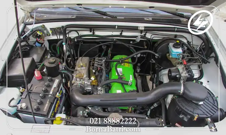 باتری نیسان وانت پادرا، همانطور که در تصویر مقابل میبینید، در قسمت پیشران خودرو و در محفظه موتور قرار دارد. برای دسترسی به باتری کافیست کاپوت جلو را باز کنید. برای تعویض باتری توصیه میکنیم به تکنیسینهای حرفهای و با تجربه مراجعه کنید تا از بروز هر گونه مشکل پیشگیری کنید.