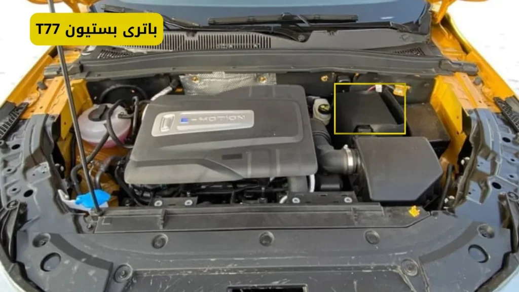 شرکت خودروسازی بر روی بستیون T77 باطری 12 ولت و 60 آمپر نصب میکند.