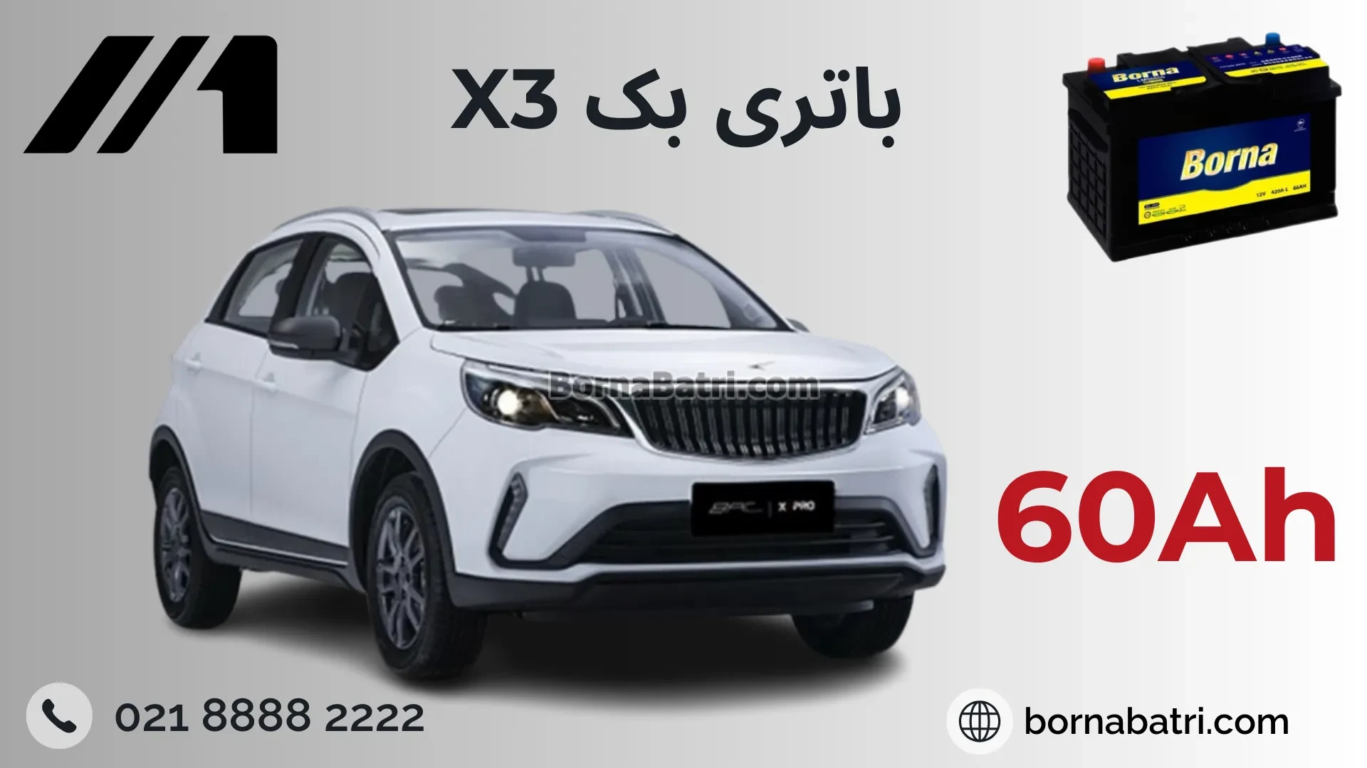 - باتریهای استاندارد ایرانی: باتری برنا باتری با کیفیت بالا و سازگاری با شرایط آبوهوایی ایران، گزینهای مطمئن برای بک ایکس ۳ است.