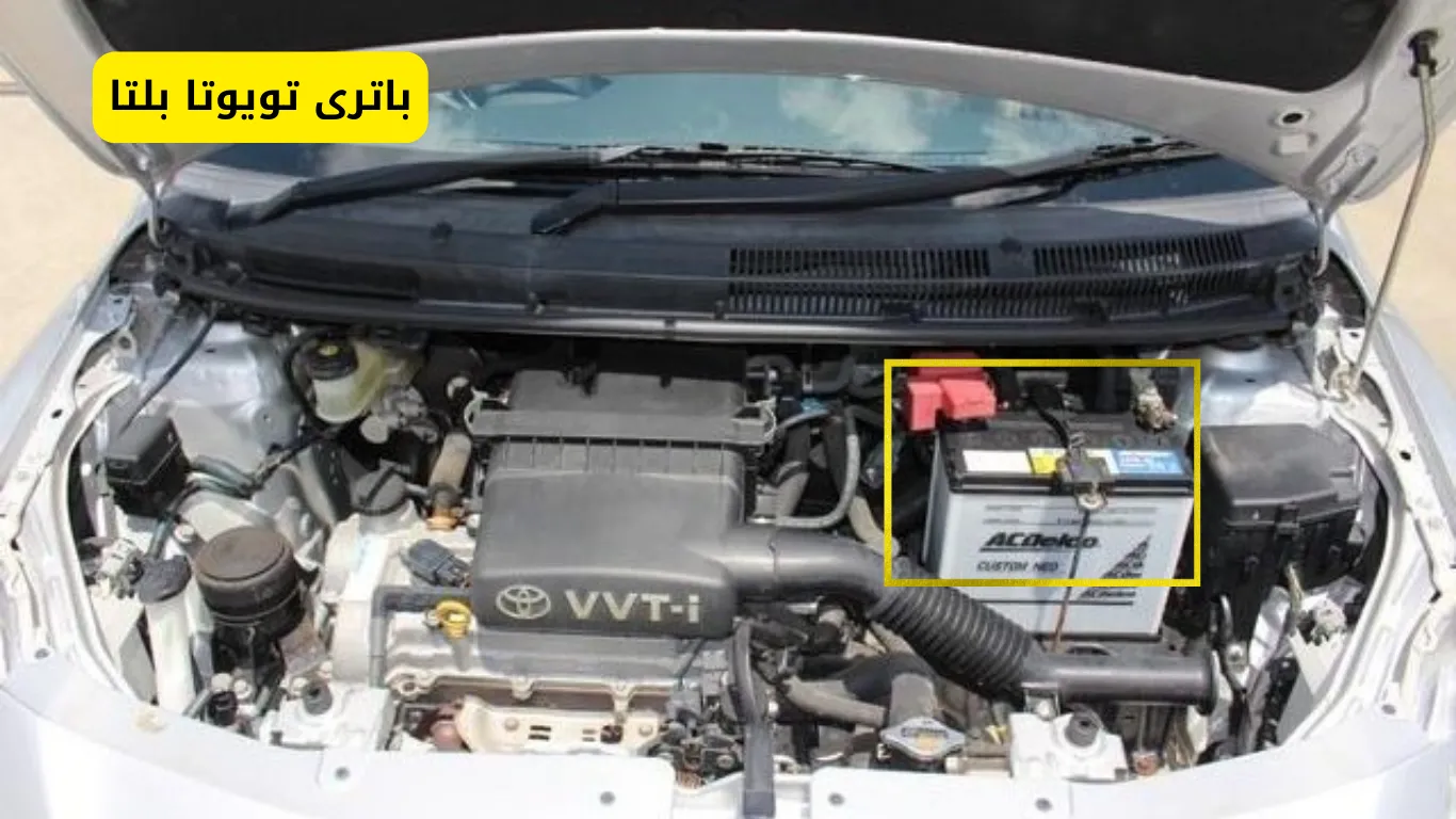 باتری تویوتا بلتا در محفظه موتور و در قسمت پیشرات خودرو قرار دارد. این موقعیت برای دسترسی آسان به باتری جهت بررسی، نگهداری یا تعویض طراحی شده است. باتری در یک جعبه محافظ قرار گرفته تا از آسیب‌های ناشی از لرزش، گرما یا رطوبت در امان باشد. برای دسترسی به باتری، کافی است کاپوت موتور را باز کرده و پوشش محافظ باتری را بردارید. با این حال، به دلیل حساسیت سیستم‌های برقی بلتا، توصیه می‌شود هرگونه بررسی یا تعویض باتری توسط تکنسین‌های حرفه‌ای، مانند تیم کیان باتری، انجام شود تا از آسیب به اجزای الکترونیکی جلوگیری شود. تصویر مقابل موتور تویوتا بلتا و جای باتری آن را نشان می‌دهد.