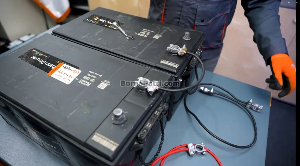 - نصب باتری جدید: باتری تازه را جایگذاری کنید. ابتدا کابل مثبت و سپس منفی را وصل نمایید. اتصالات را سفت ببندید تا لرزش عملیاتی شل نشود.