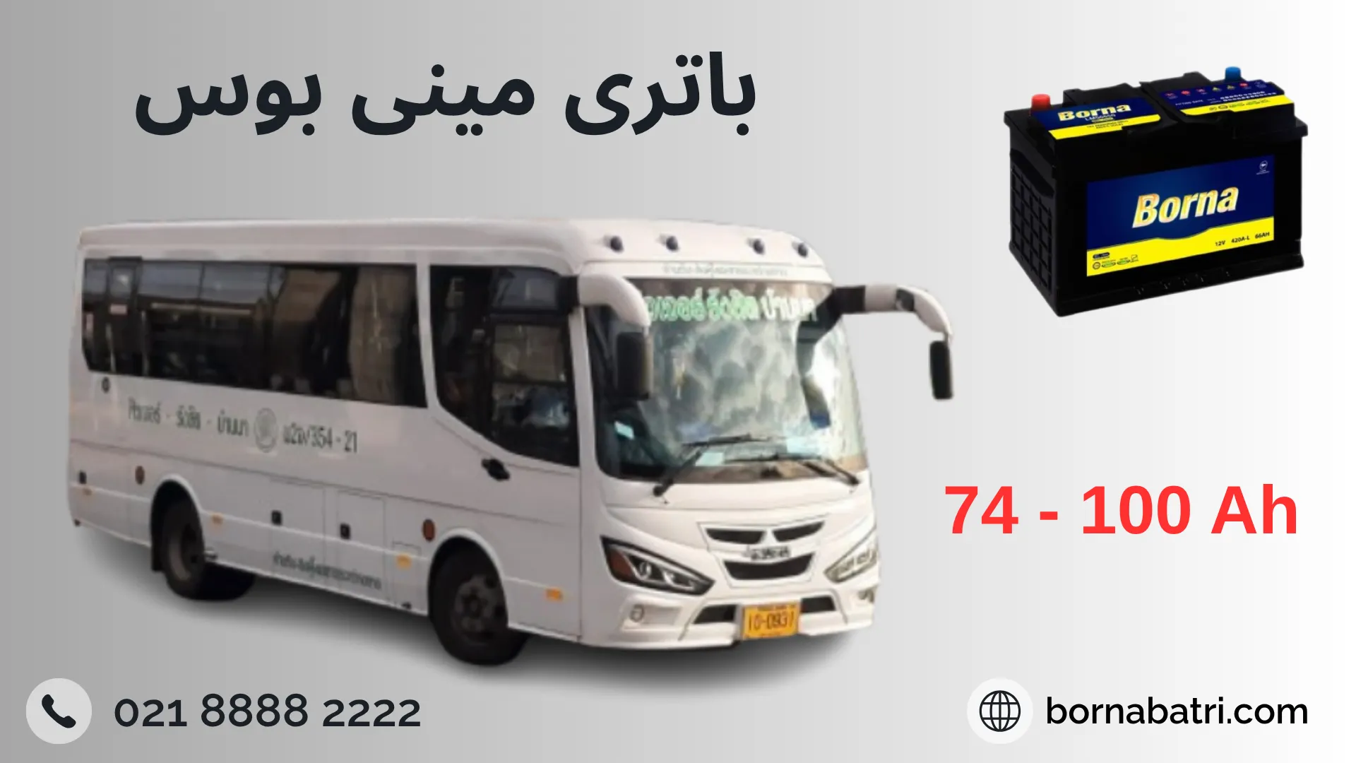 برای باتری مینی بوس باید دو عدد باتری 12 ولت به صورت سری شده استفاده شود تا ولتاژ 24 ولت تولید شود.