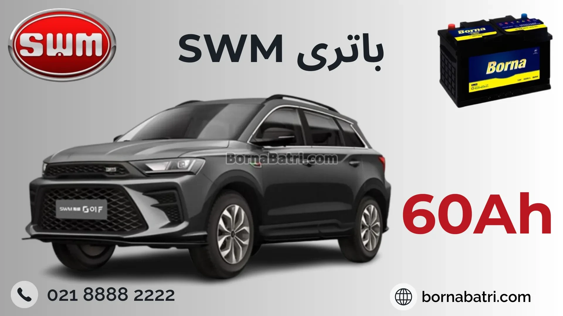 برای خودرو SWM باطری 60 آمپرساعت پیشنهاد میشود.